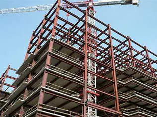 ● Челични греди и колони: Овие ги формираат примарните елементи што носат оптоварување на зградата.