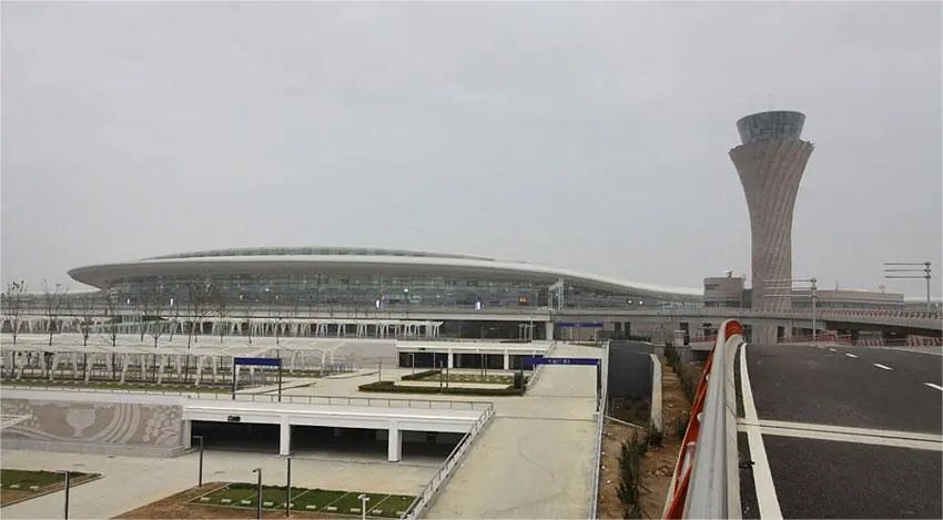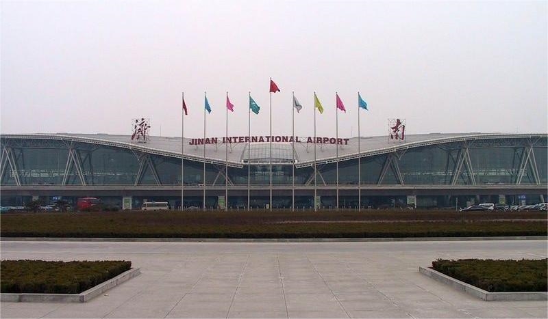 Голем меѓународен портал на ниво на 4E на 30 км од центарот на градот. Експанзијата во фаза II опфаќа аеродромски објекти, контрола на воздушниот сообраќај, снабдување со гориво и бази за „Шандонг ерлајнс“ и „Кинески Исток ерлајнс“.