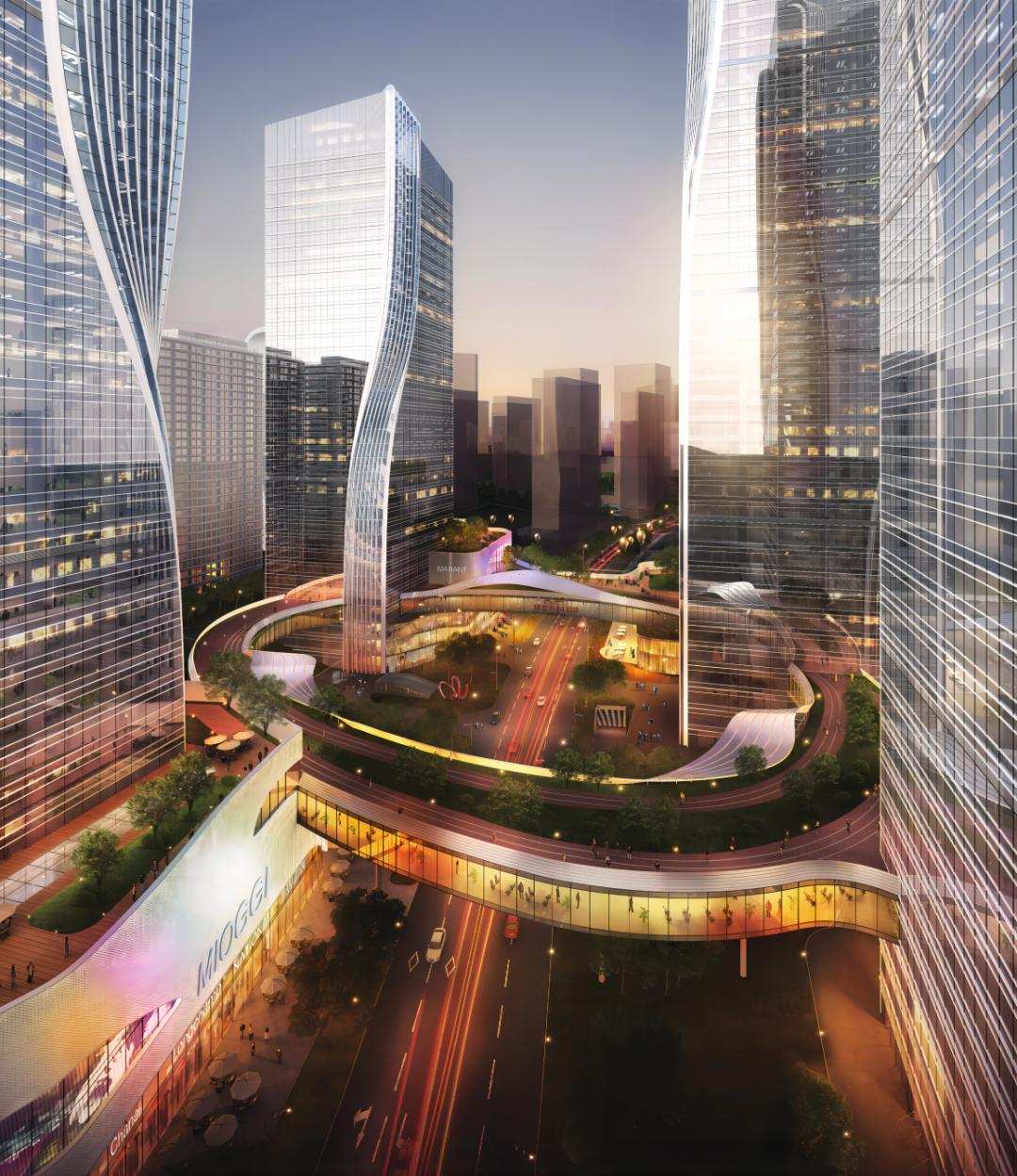 Овој комплекс Твин-кула опфаќа 57 хектари со вкупна површина од 220.000 км, интегрирајќи канцеларии, хотели, мало, јадење и забава. Неговите стаклени wallsидови на завесите, украсени со над 7.200 метри синхронизирани светлосни ленти, создаваат динамични обрасци на скоро 11,000 км, давајќи моќно визуелно влијание.