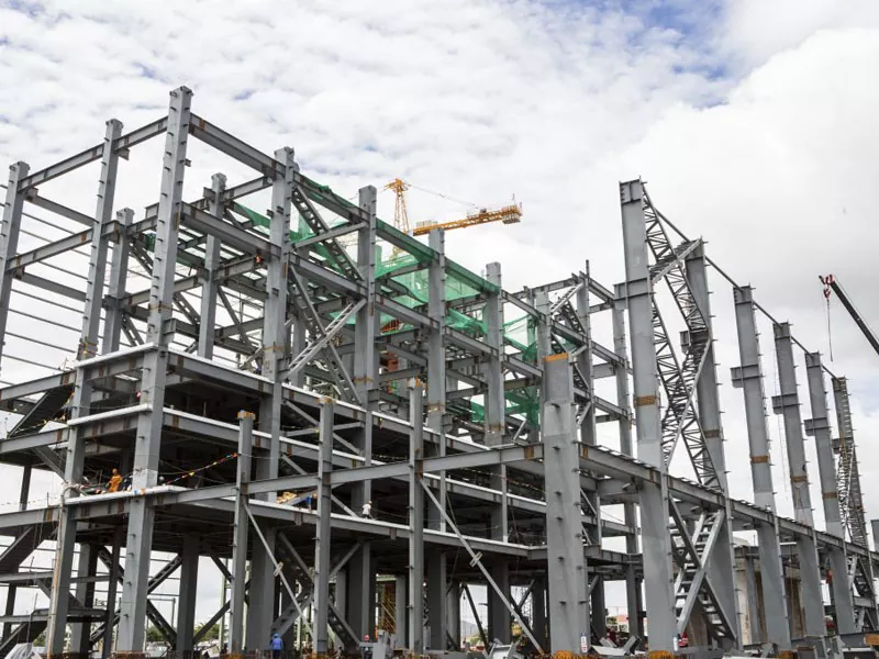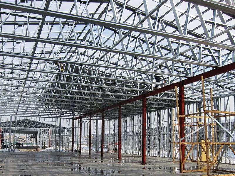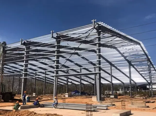 Челичните компоненти, вклучувајќи греди, колони, загради и бандажи на покривот, се префабрикувани во фабрички амбиент користејќи висококвалитетен челик. Овие компоненти се фабрикувани до прецизни спецификации, осигурувајќи дека тие се вклопуваат заедно точно и безбедно за време на инсталацијата. Процесот на префабрикување вклучува напредни техники за инженерство и заварување за да се гарантира квалитетот и издржливоста на секое парче.