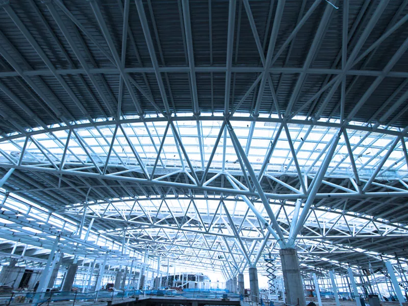 5. Покрив и надворешно обложување Откако ќе се заврши челичната рамка, системот за покривање е инсталиран, вообичаено користејќи изолирани метални панели или еднослојни мембрански материјали. Надворешните ѕидови, доколку се вклучени во дизајнот, исто така се монтираат со помош на метални панели, тули или други материјали за обложување.