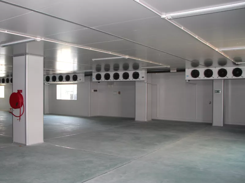 • Wallsидовите на магацин се изработени од повеќеслојни композитни изолациони материјали и се комбинираат со прецизна технологија за запечатување за да се обезбеди стабилна внатрешна температура. Овие изолациони материјали не само што можат да го изолираат влијанието на надворешните температури, туку и да го намалат загубата на ладен воздух, помала потрошувачка на енергија и да постигнат ефекти за заштеда на енергија.